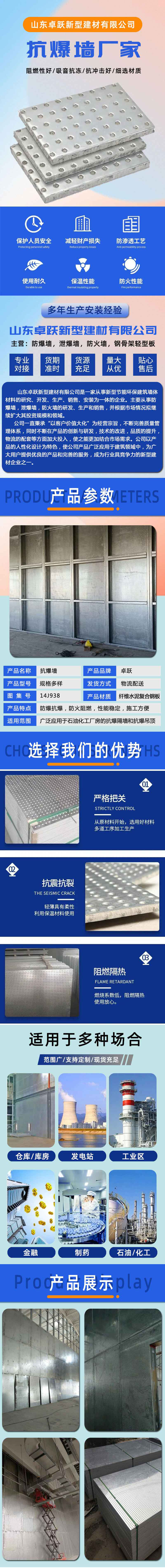 长岛防火抗爆墙 耐火4h 抗爆压力值3mpa